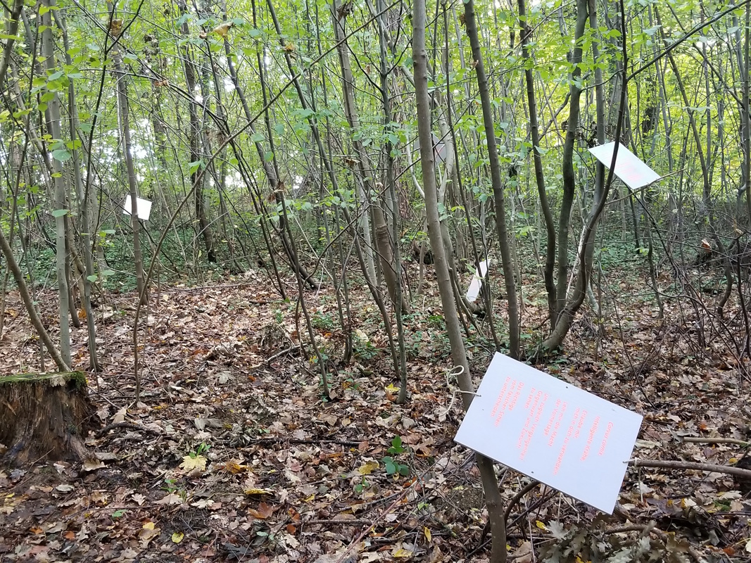 As part of the Forest Encounters project, Nayarí Castillo’s artistic research explores human and more-than-human encounters in the forests in and around Graz, Austria. Within this context, she created a multi-perspective body of work centered on otherness and communication rituals. These works include Spells for Shapeshifting, which opens a space for empathy with city forest fauna, The Shrine for the Goddesses of the Wild, which summons magic and invisible spiritual forces, The Rogues (in collaboration with Hanns Holger Rutz), which explores communication between humans and technological beings, and Stratifications (in collaboration with Reni Hofmüller), which pays attention to invisible underground creatures, and, finally, Forest Encounters Glossary, a collaborative publication based on artistic strategies that explore the forest.