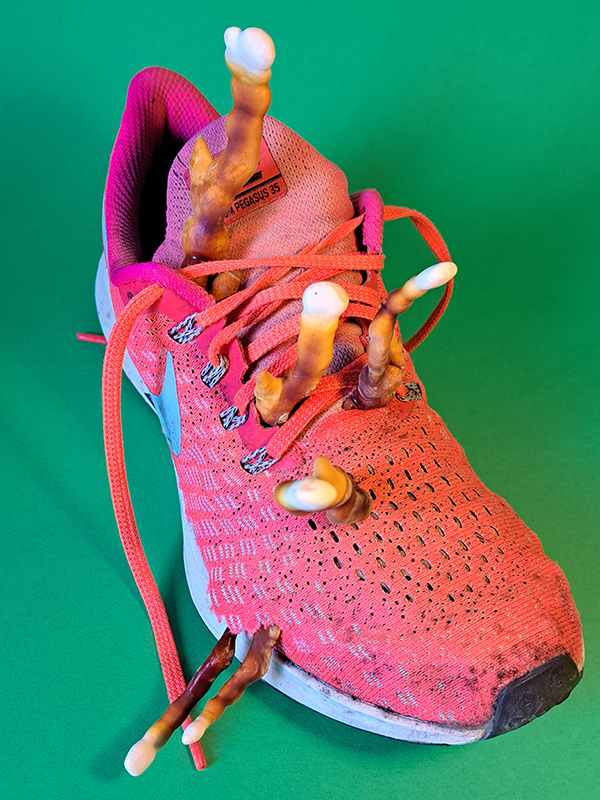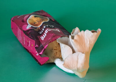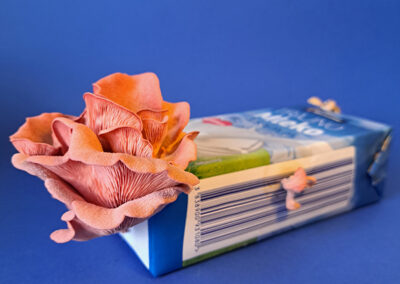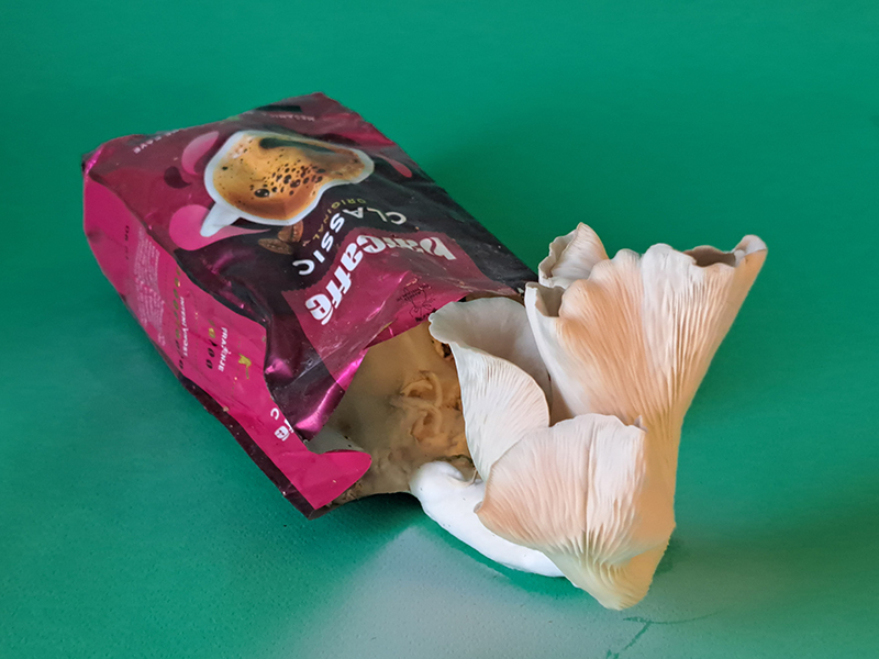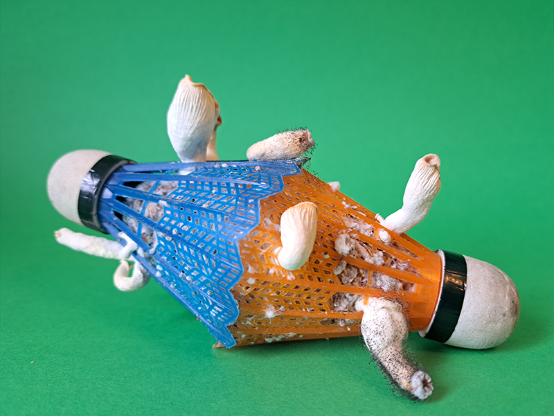 The artwork references the books The Mushroom at The End of the World by the anthropologist Anna L. Tsing and Entangled Life: How Fungi Make Our Worlds, Change Our Minds and Shape Our Futures by the biologist Merlin Sheldrake.
